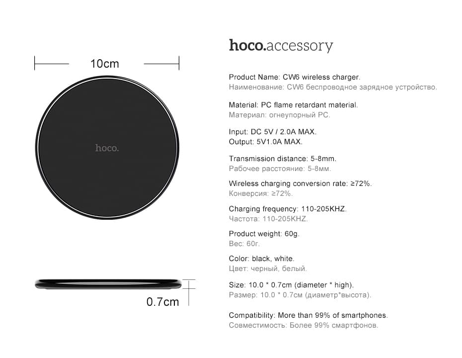 Беспроводная зарядка Hoco CW6 5V Черная