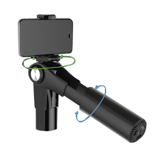 - Так как смартфон крепится непосредственно к центру стедикама без дополнительной опоры, его можно с легкостью наклонять и поворачивать вокруг своей оси, что также позволяет работать в режиме замедленной съемки.